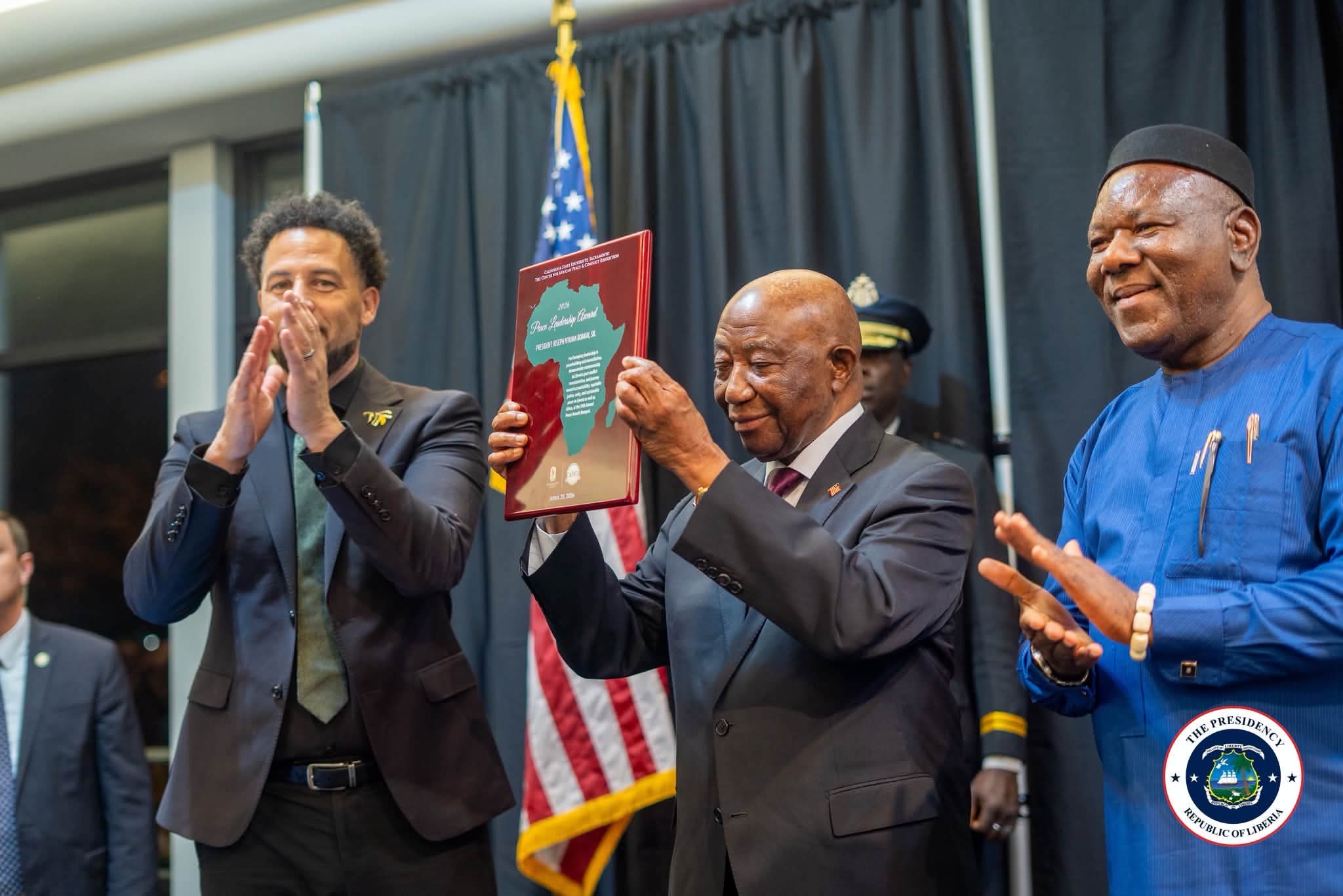 Speaking at the 30th Anniversary of the Center for African Peace and Conflict Resolution (CAPCR) at California State University, Sacramento, President Boakai was presented the 34th Annual Peace Award under the theme “Honoring Our Peace Heroes.”