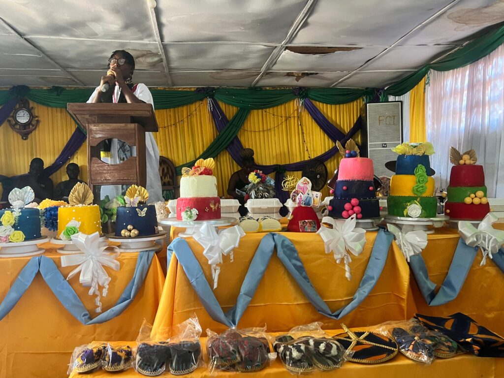 A total of twenty-four community members graduated after completing vocational training in soap making, handcrafts, interior decoration, cake making, beauty, and hair care.